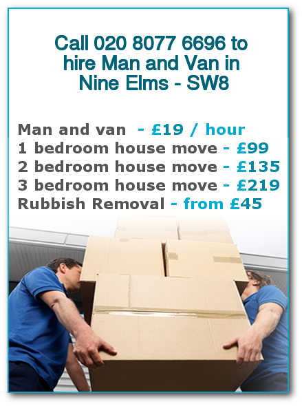 Contact us today and choose for your relocation the highest quality of man and van services at the lowest possible fees in the area of Nine Elms SW8.